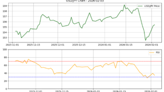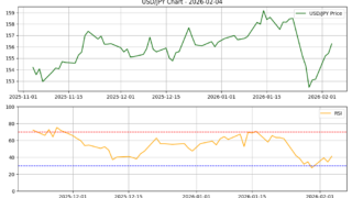皆さん、こんにちは!本日も為替のマーケットをPythonプログラムで分析していきましょう。2026年2月4日のドル円(USD/JPY)相場は、大きな方向感に欠ける レンジ推移 となりました。昨今の激しい値動きから一転し、市場は次の材料を待つ「静観ムード」が漂っています。本日の市場データをもとに、AIが導き出した分析結果を詳しく見ていきましょう。