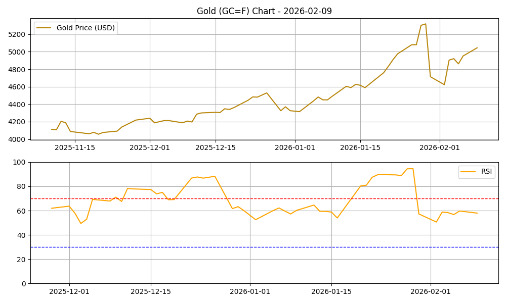 【ゴールドAI分析】5,044ドル付近で膠着。次のトレンド発生はいつ?【2026/2/9】